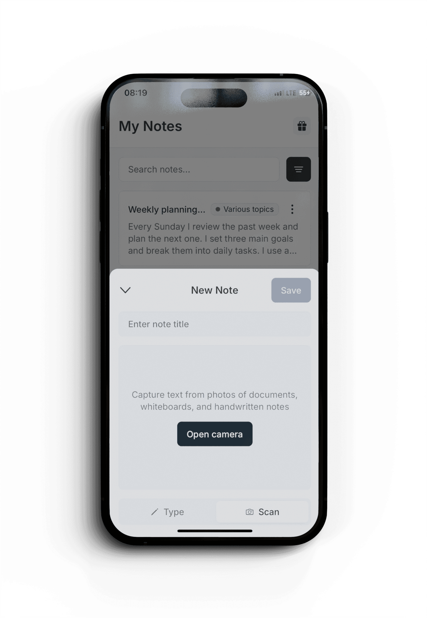 Scan documents and extract text instantly with built-in OCR. Works with handwritten notes, printed pages, and photos.