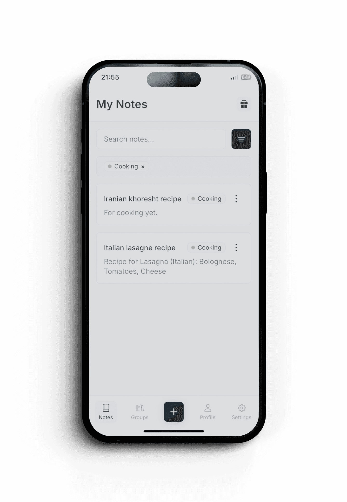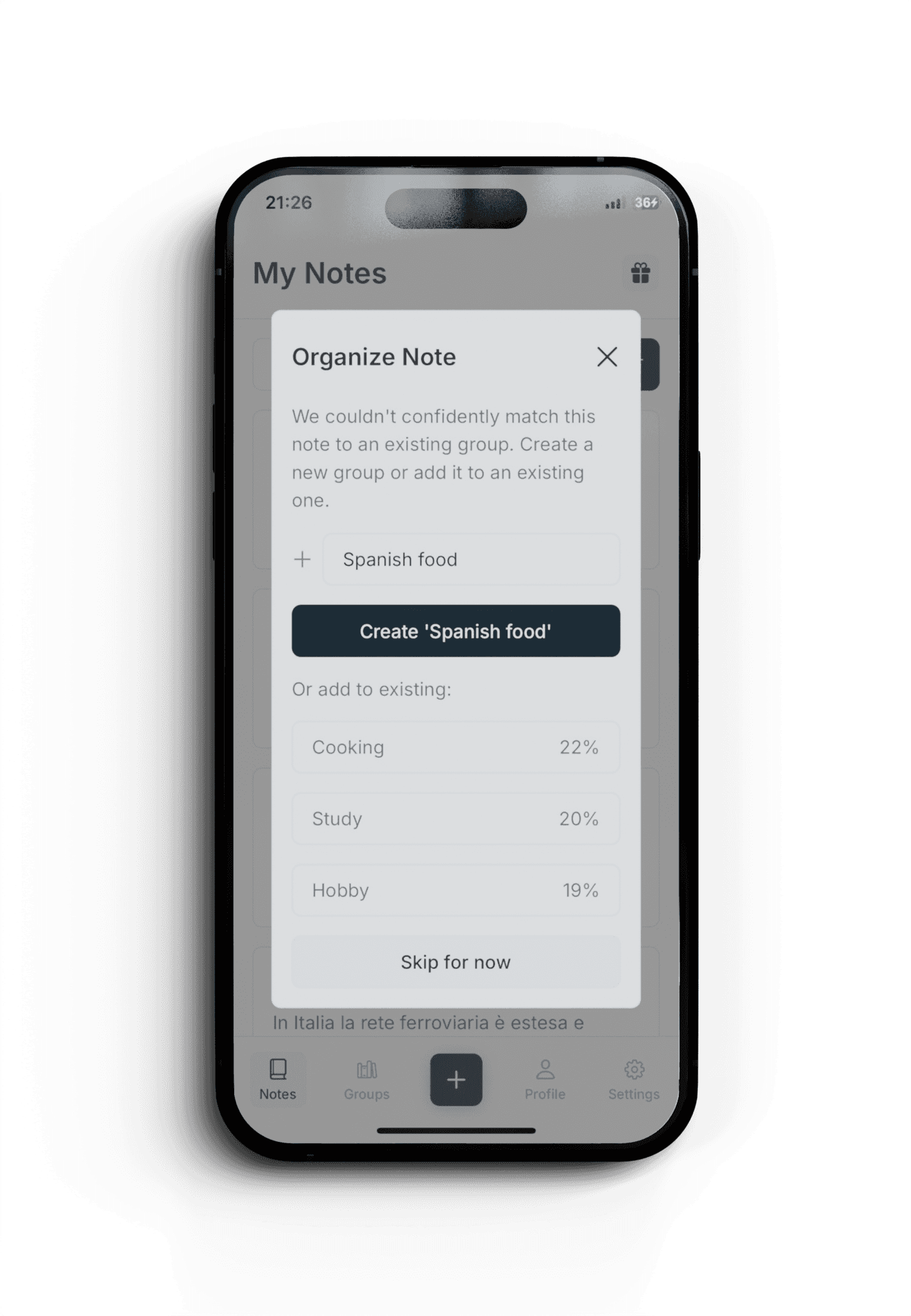 Organize notes automatically with AI-powered grouping or create and edit groups manually. Your notes, your structure.