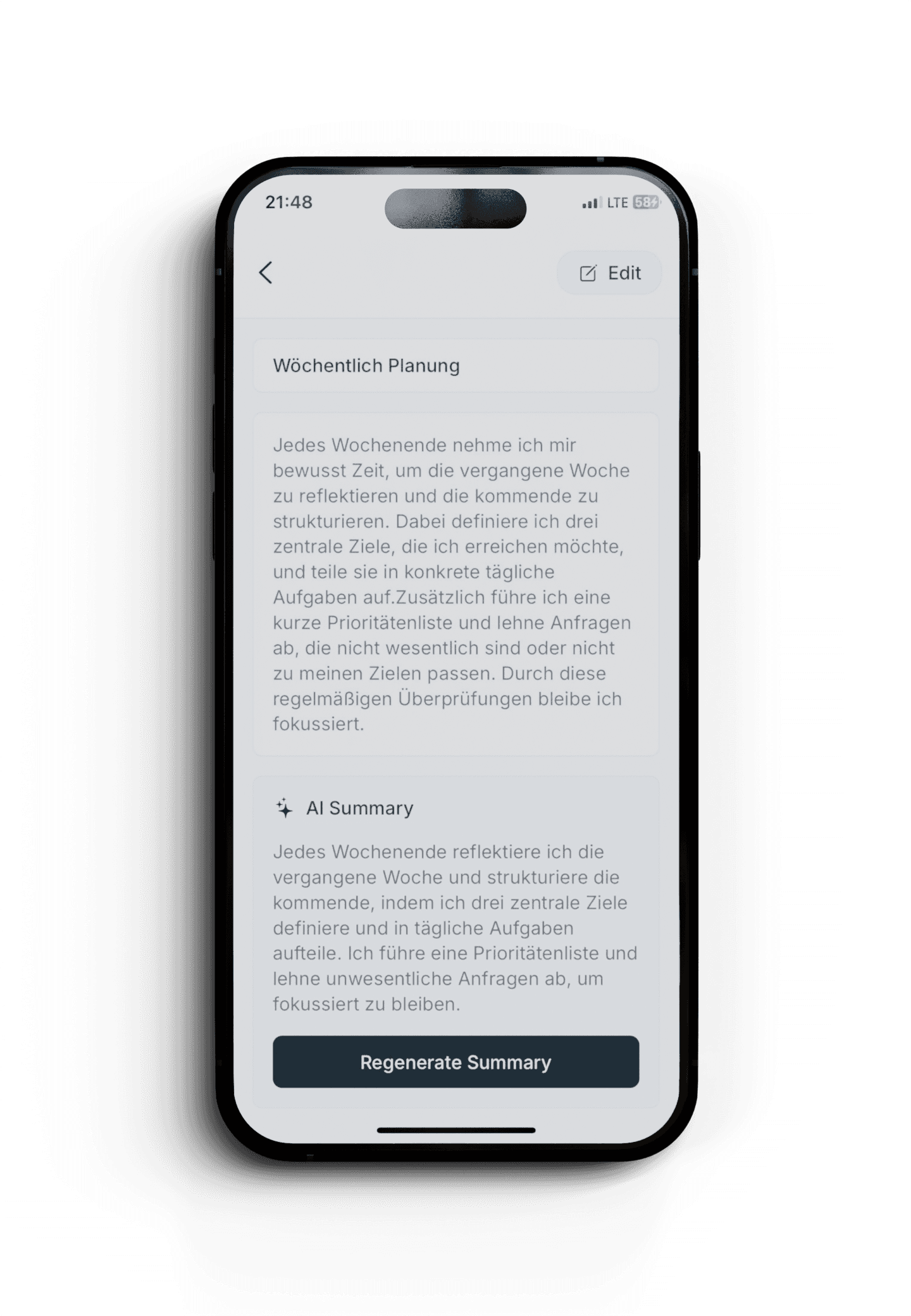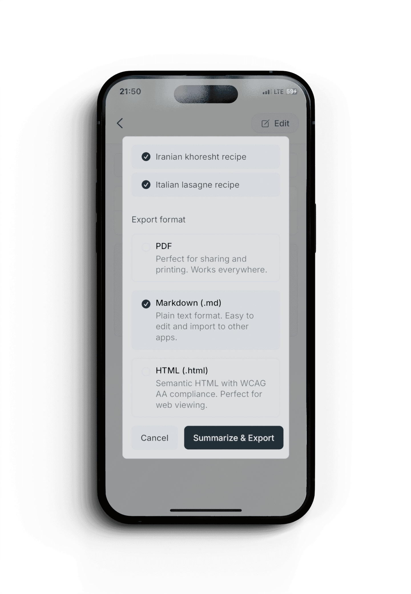 Summarize individual notes or entire groups with concise, AI-generated summaries.